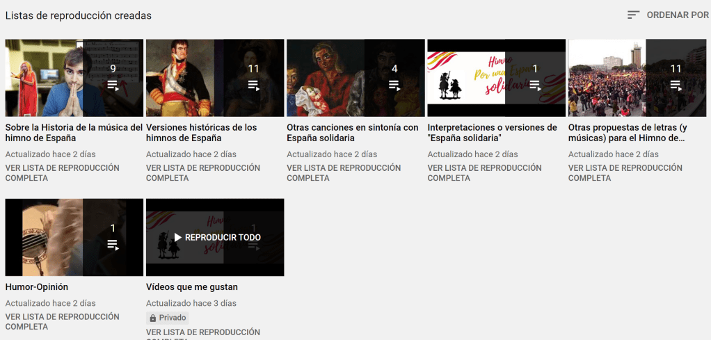Además del vídeo ilustrativo y subtitulado con nuestra propuesta de letra para el himno de España «España solidaria» en el canal de YouTube, hemos incorporado unas listas de reproducción con material muy interesante, y que servirá de referencia e ilustración para próximas entradas de este blog.