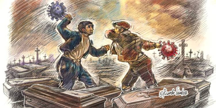 La primera ilustración de esa entrada era una viñeta creada en marzo de 2020 por una mujer llamada Carmen, que precisamente también era una llamada a la responsabilidad y a la unidad, con la imagen de Don Quijote y Sancho.