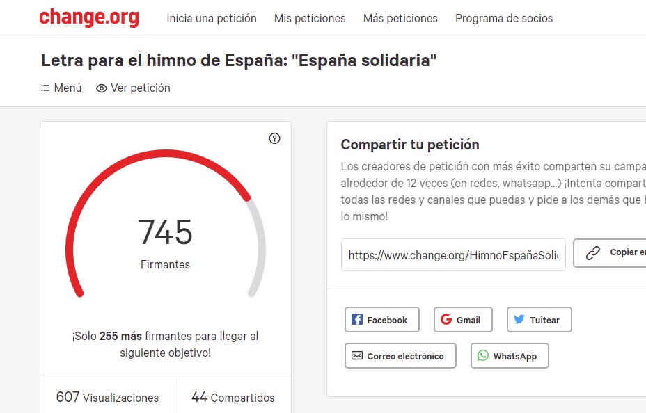 Esto ha sido una sorpresa y una grandísima alegría. Parecía lógico esperar que una propuesta para poner letra al himno de España interesara, de hacerlo, a españoles, pero está claro que en esta era de globalización e internet las propuestas llegan a cualquier parte del mundo. Y nos enorgullece el que la letra del himno que proponemos haya merecido el apoyo de nacionales de otros países hispanoamericanos, porque como exponíamos en su motivación, no es un himno nacionalista, ni frente a otros pueblos y naciones (como es habitual en muchos himnos) sino que teje redes de fraternidad y solidaridad con todos los pueblos de la Tierra, y en nuestro caso especialmente con los pueblos hispanoamericanos. ¡Es que hay más firmantes en El Salvador que en la propia España!